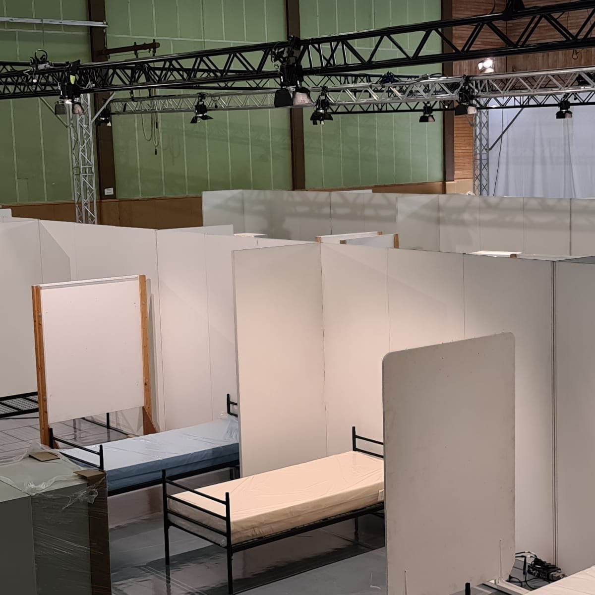 Mit clickwand entstehen in Turnhallen, Sport- und Mehrzweckhallen in kurzer Zeit klare, funktionsfähige Bereiche – etwa für Ruhe- und Familienzonen, Materiallager, Briefingpunkte oder medizinische Stationen.